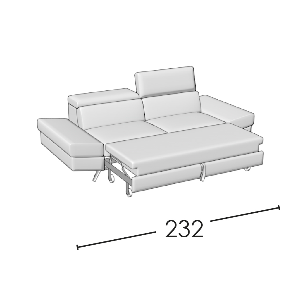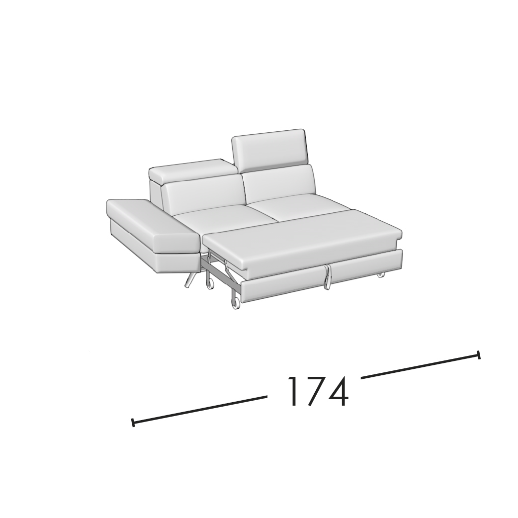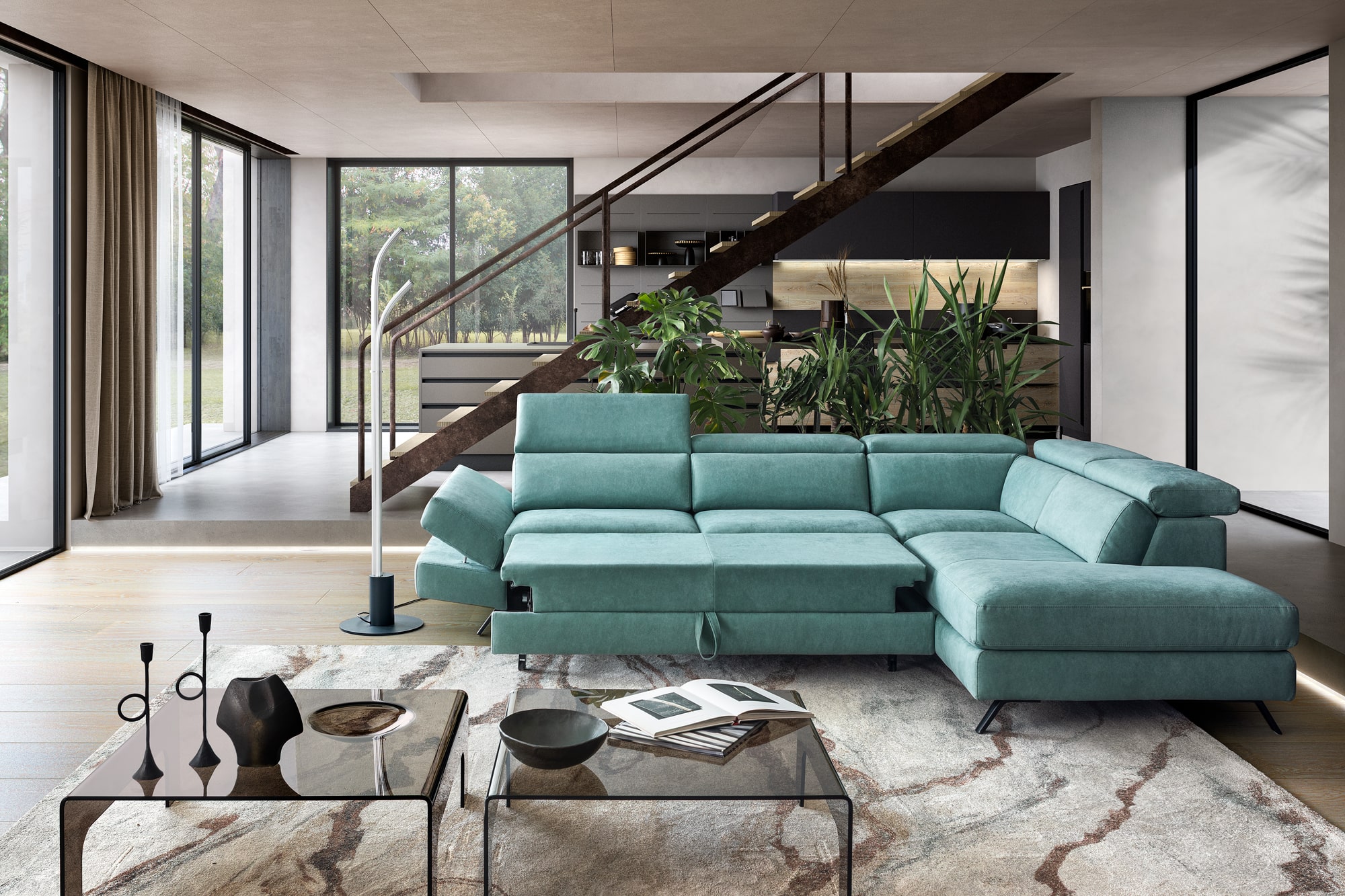 Le pouf dauphin intégré complète la polyvalence du modèle, permettant d'augmenter l'espace d'assise et de transformer le salon en un espace fluide et dynamique.