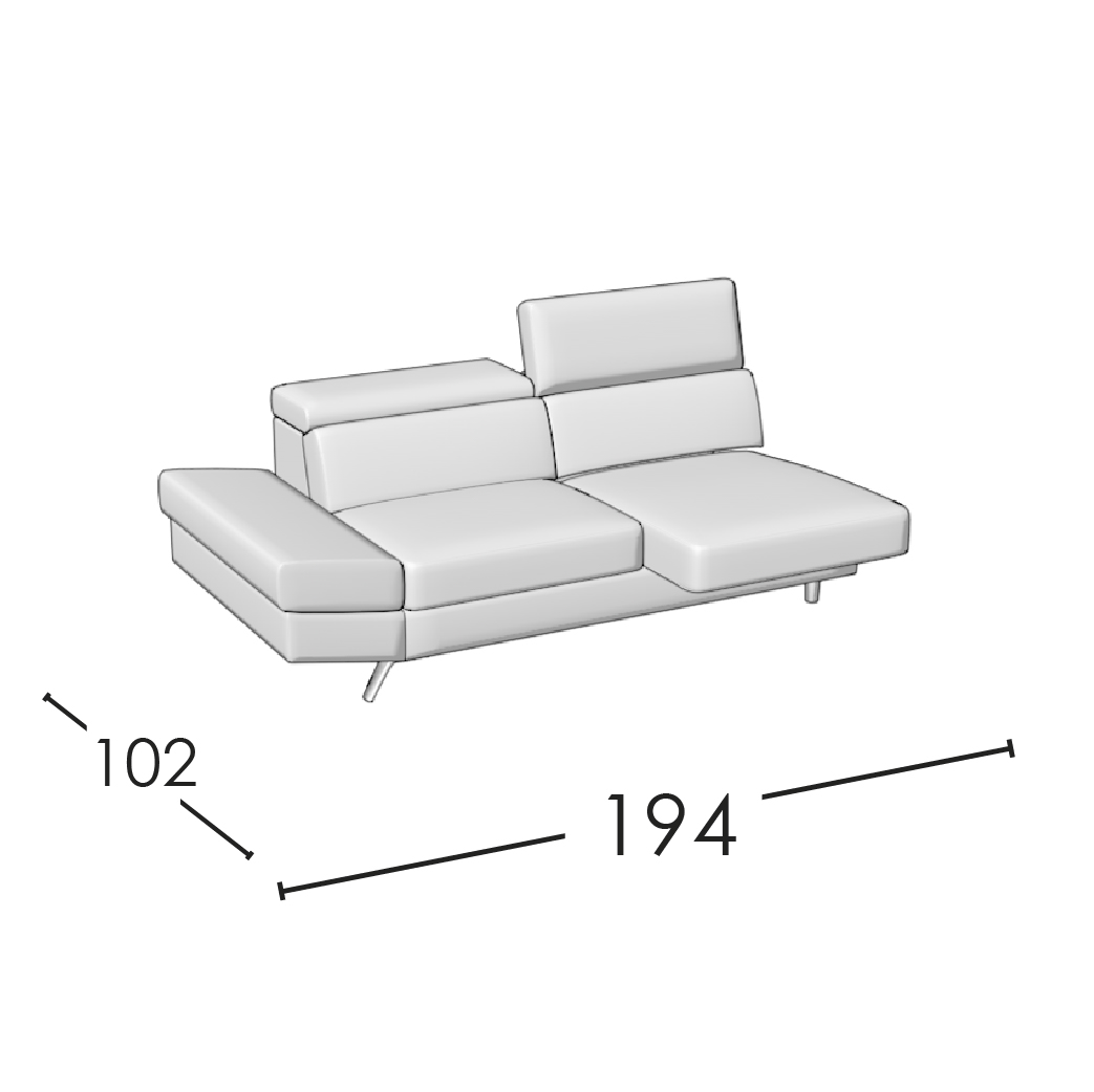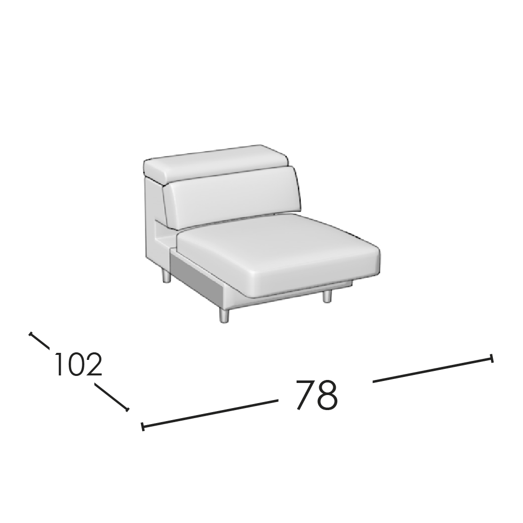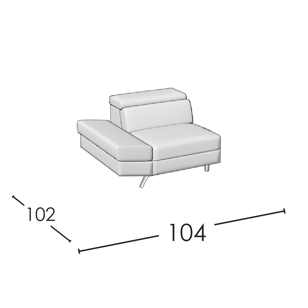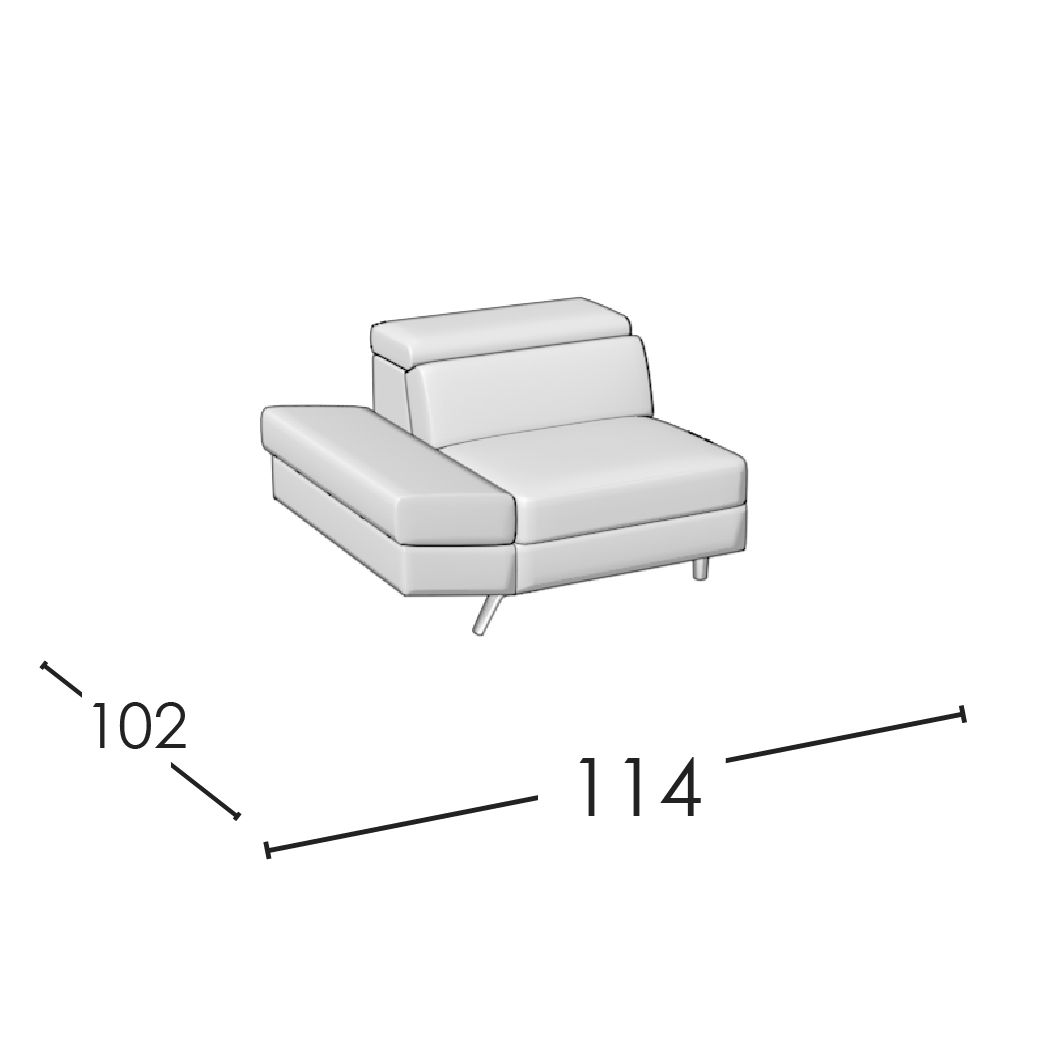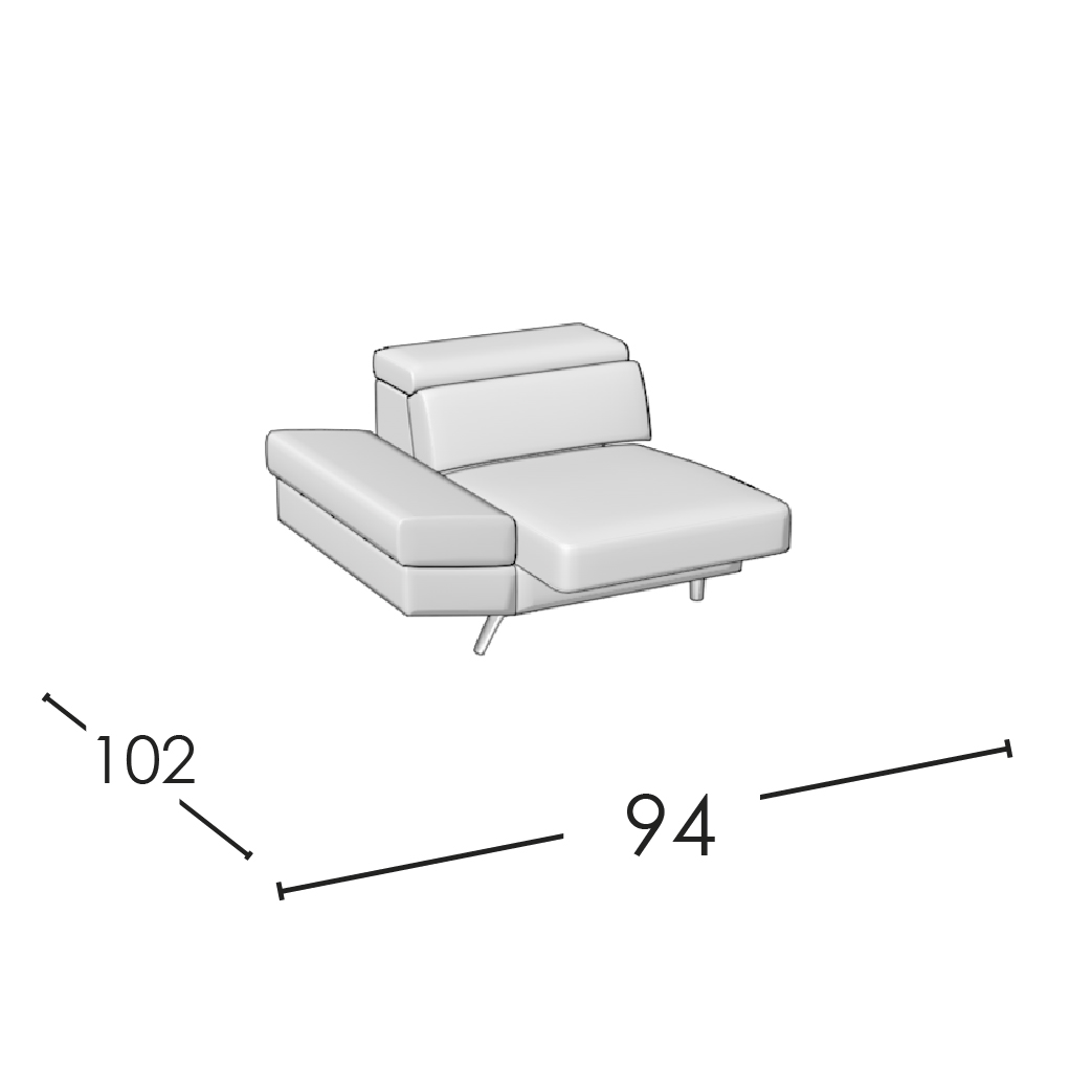 Les accoudoirs inclinables offrent un confort sur mesure, tandis que la hauteur réduite du profil souligne sa légèreté visuelle, ce qui le rend idéal comme pièce maîtresse au centre de la pièce.