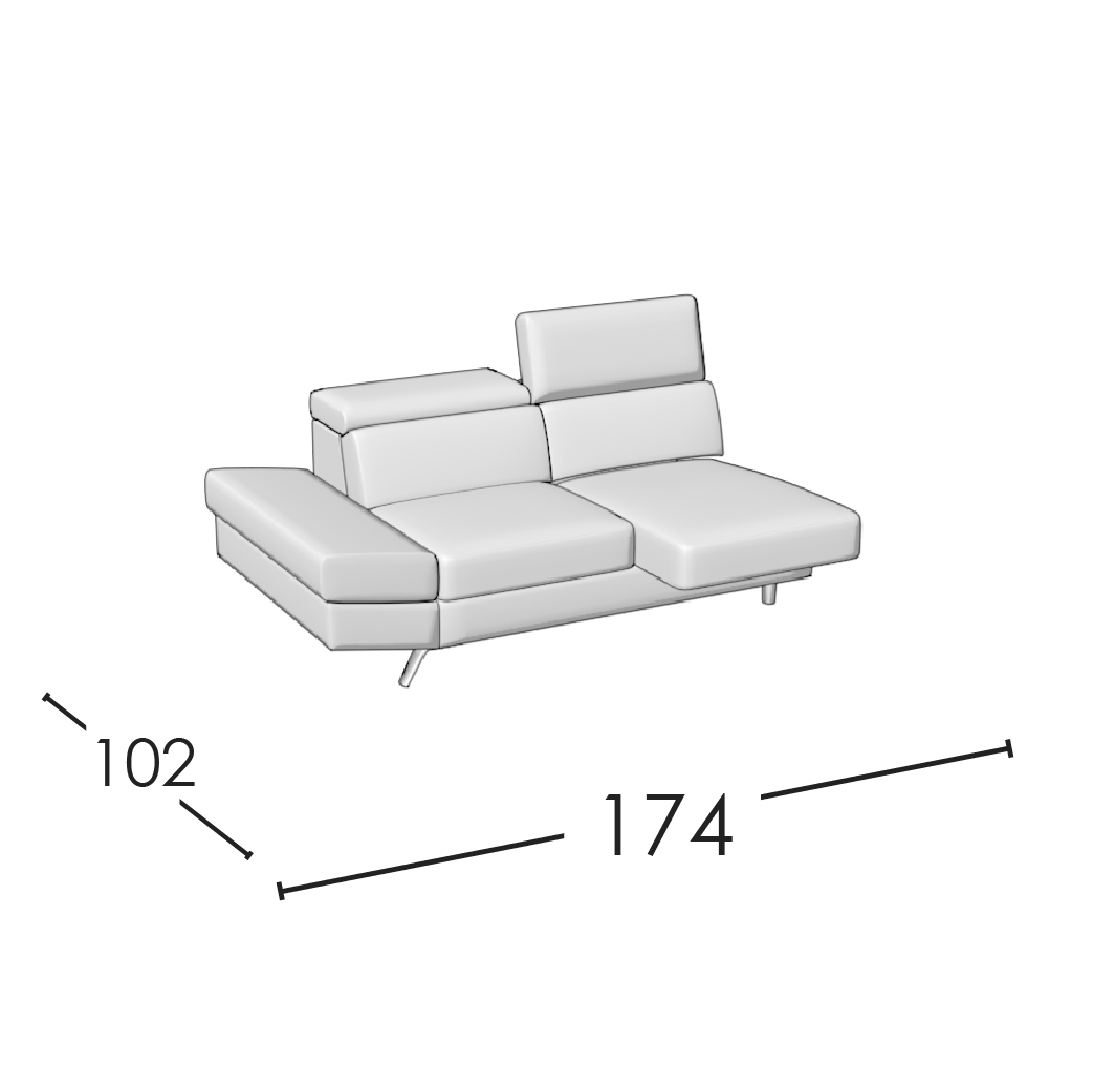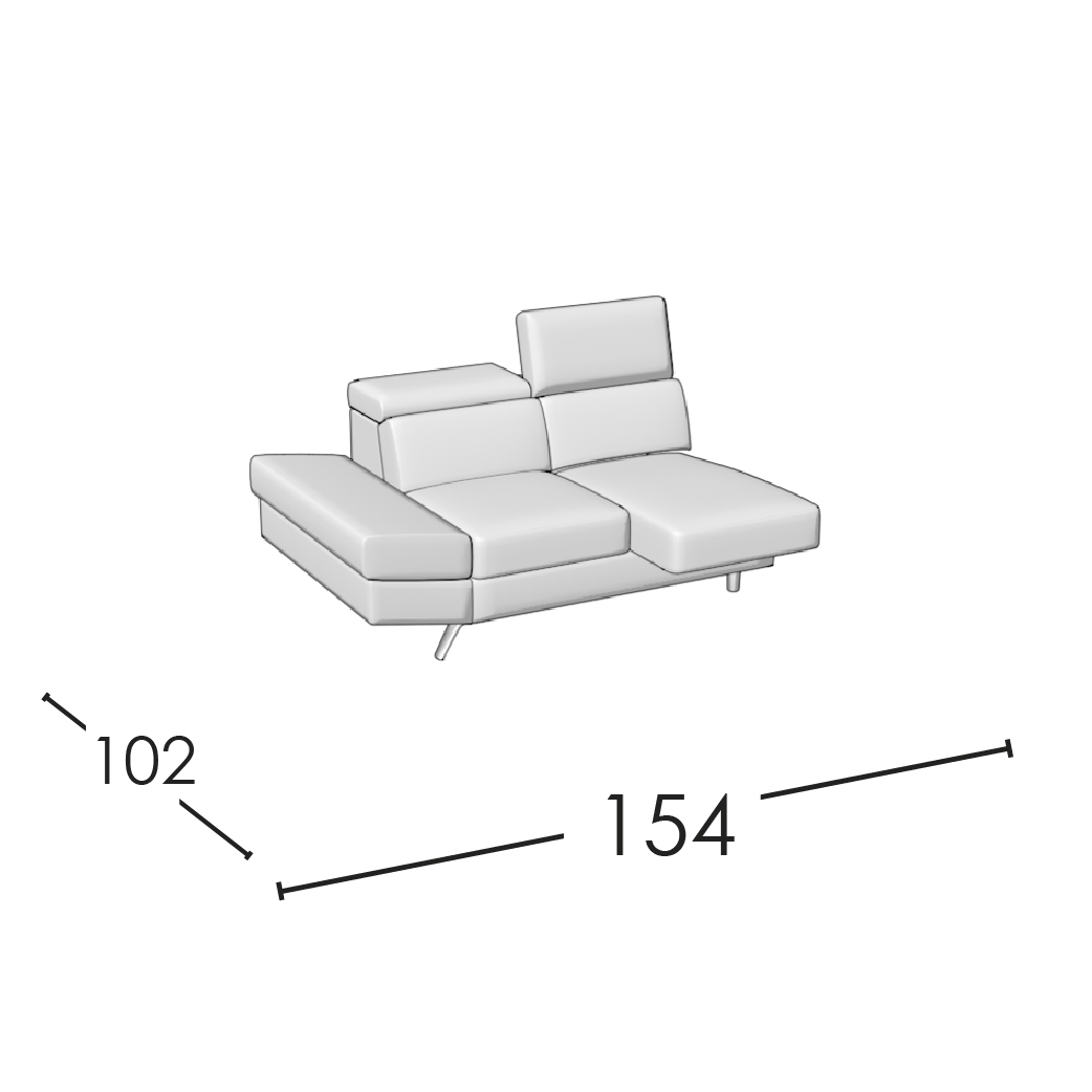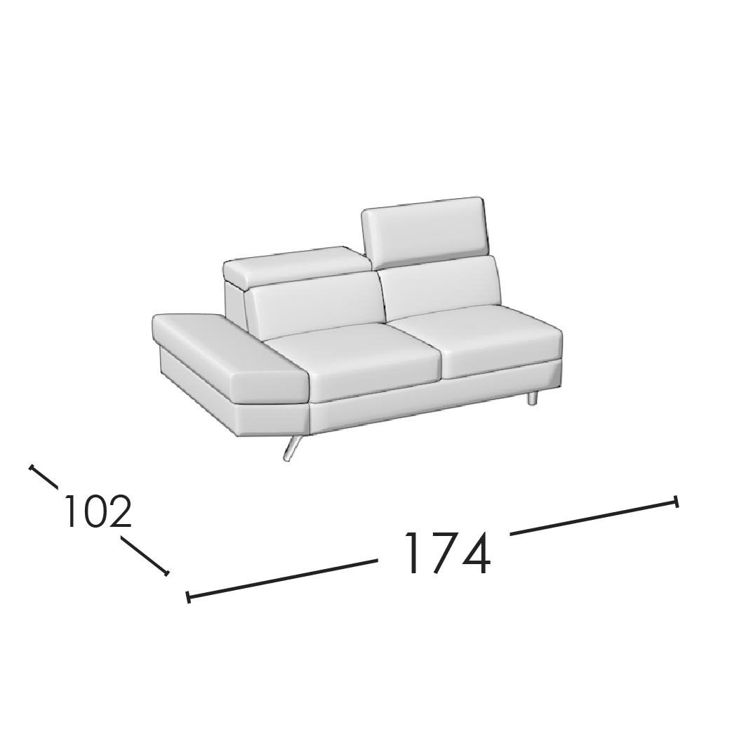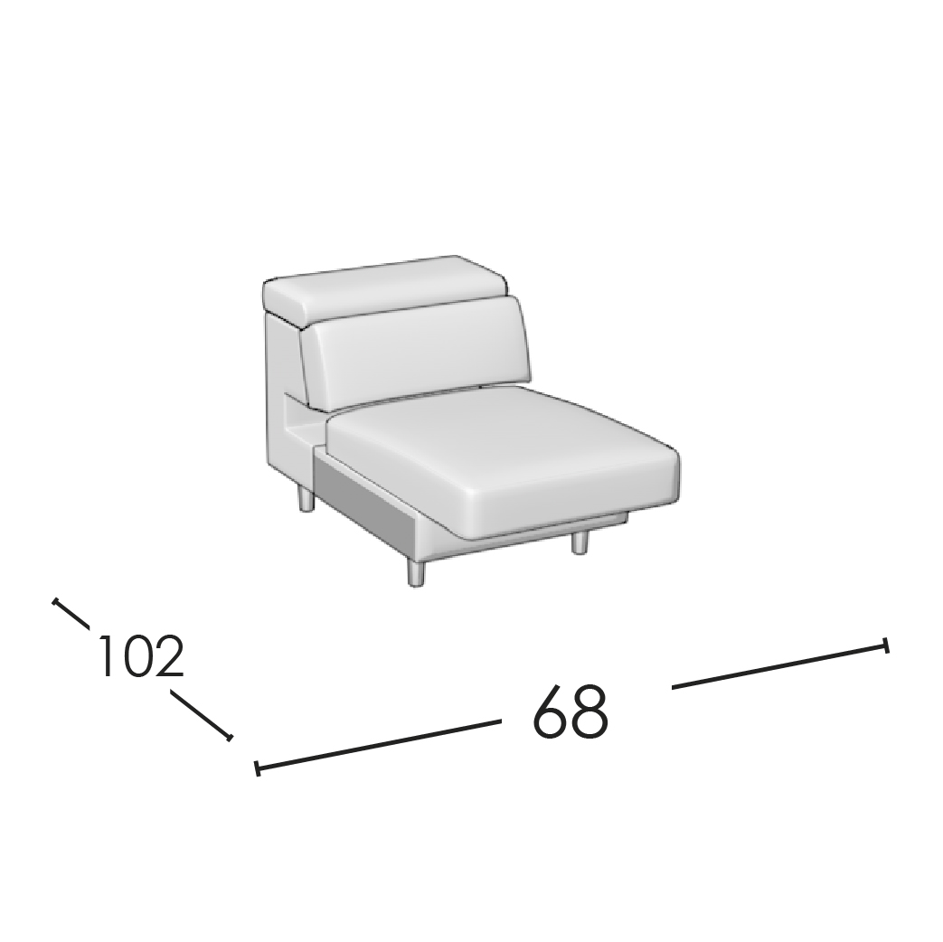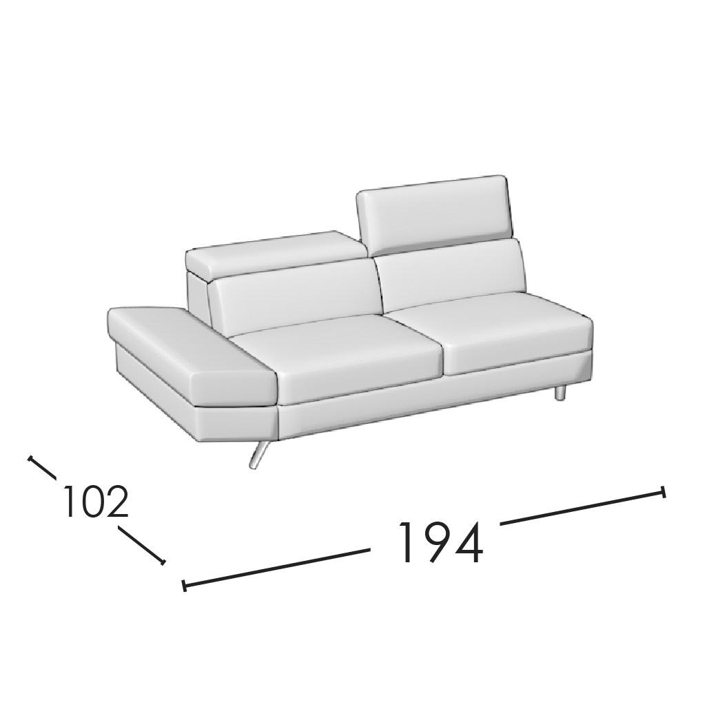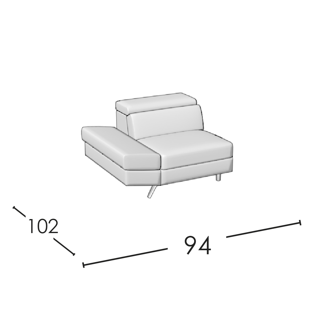 Les accoudoirs inclinables offrent un confort sur mesure, tandis que la hauteur réduite du profil souligne sa légèreté visuelle, ce qui le rend idéal comme pièce maîtresse au centre de la pièce.