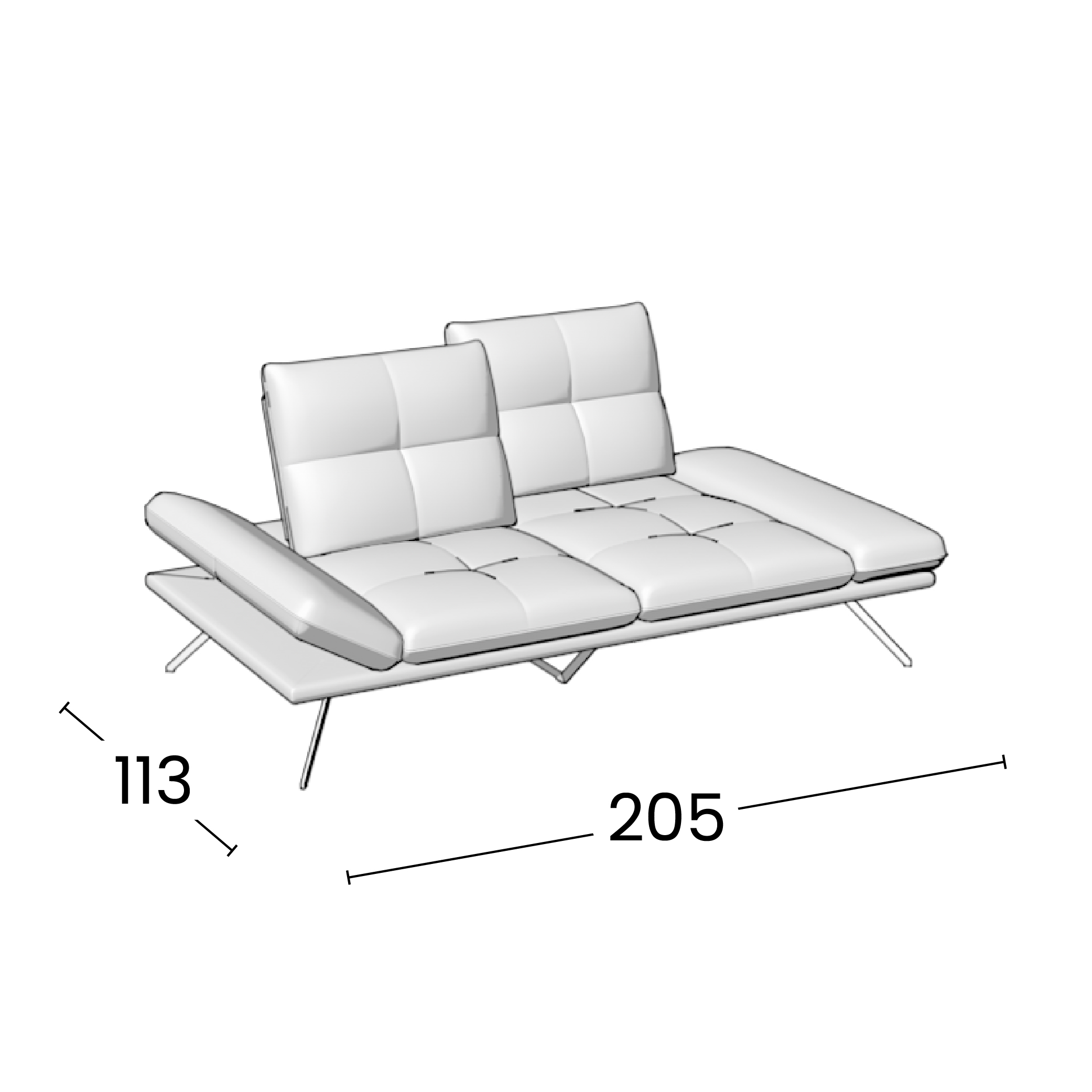 Disponible en cuir, tissu ou microfibre et dans une large palette de couleurs, ce canapé est le choix idéal pour ceux qui recherchent le style et la polyvalence, capable de s'intégrer harmonieusement à toutes les exigences esthétiques.